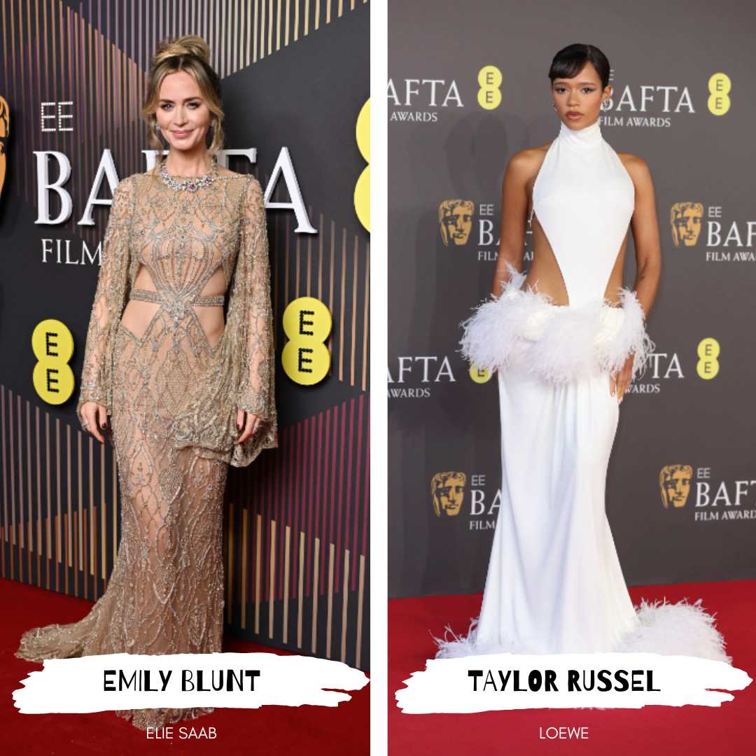 Daisy Edgar-Jones, che ha indossato un abito bordeaux di Gucci con un paio di shorts in pelle lucida, creando un contrasto tra glamour e grinta.Taylor Russell, che ha stupito con un abito bianco con piume e un taglio asimmetrico di Loewe, abbinato a degli orecchini di Tiffany & Co.